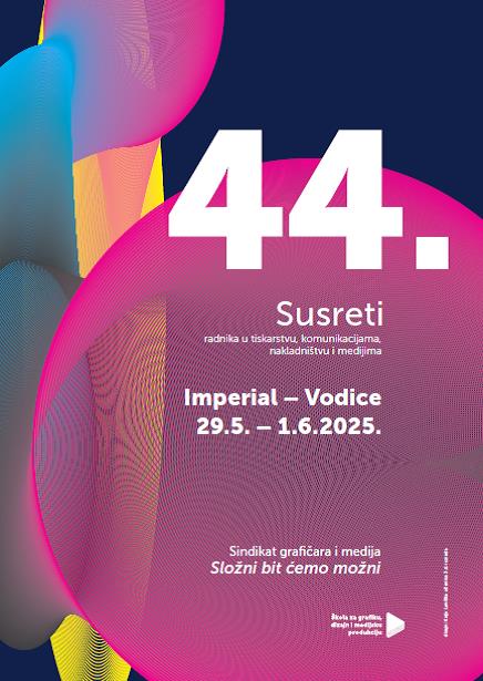 Sindikat grafičara i medija nastavlja tradiciju i organizira 44. susrete radnika u tiskarstvu, komunikacijama, nakladništvu i medijima, od 29. svibnja do 1. lipnja 2025. u Vodicama u kompleksu Hotela Imperial.